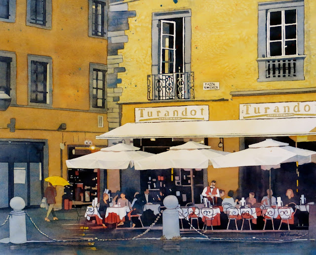 Rainy Day on the Piazza San Michele, 20"x28" watercolor on paper
